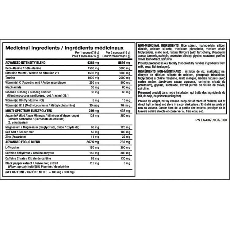کافئین : کافئین محرکی است که به طور گسترده در مکمل های قبل از تمرین به دلیل توانایی آن در افزایش انرژی، هوشیاری و خلق و خوی استفاده می شود. کافئین همچنین میتواند عملکرد ورزشی را با کاهش فعالیت درک شده، افزایش تحمل درد و تحریک اکسیداسیون چربی افزایش دهد. PVL Domin8 Sport حاوی 200 میلی گرم کافئین در هر وعده است که یک دوز متوسط تا بالا است که می تواند انرژی قابل توجهی را برای اکثر کاربران افزایش دهد. با این حال، برخی از کاربران ممکن است به کافئین حساس باشند و عوارض جانبی مانند عصبانیت، اضطراب، بی خوابی یا افزایش ضربان قلب را تجربه کنند. بنابراین، توصیه می شود قبل از مصرف یک وعده کامل PVL Domin8 Sport، با دوز کمتر شروع کنید و تحمل خود را ارزیابی کنید.