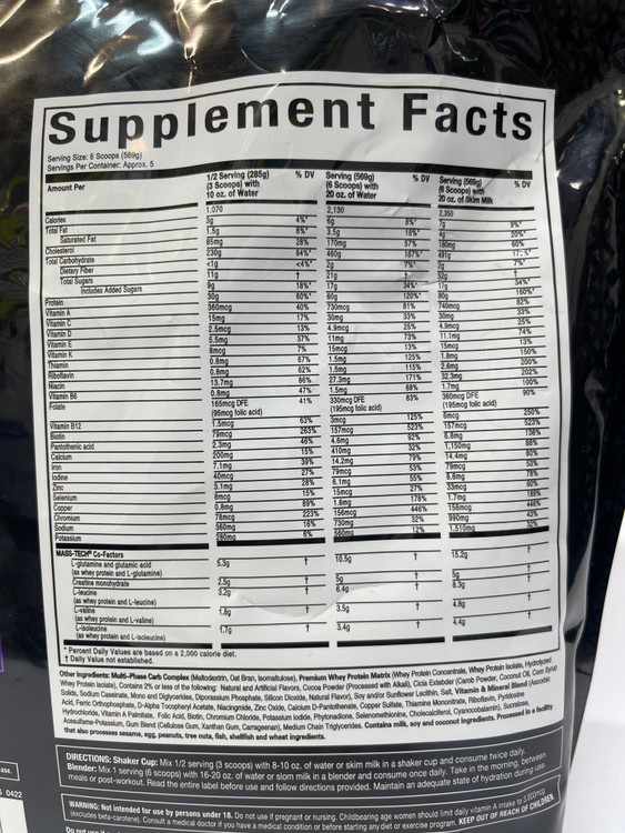 فرمول جدید و علمی مس تک، کالری زیاد (در صورت ترکیب با 475 میلی لیتر شیر بدون چربی). پروتئین وی با کیفیت بالا و کربوهیدرات های پیچیده با هضم آسان را ارائه می دهد. این فرمول آن قدر قدرتمند است که فقط به مصرف یک سروینگ در روز از آن نیاز دارید!