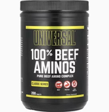 آمینو بیف یونیورسال 200 عددی Universal Nutrition 100% Beef Aminos ترکیبی از اسیدهای آمینه گوشت گاو است که از ایزوله پروتئین گوشت گاو با کیفیت بالا، کنسانتره آلبومین گوشت گاو و جگر گاو آرژانتینی ساخته شده است. هر قرص حاوی طیف گسترده ای از اسیدهای آمینه بسیار غلیط و مواد مغذی ضروری است. هر وعده منبع متنوعی از اسیدهای آمینه را ارائه می دهد که صرفا از منابع گوشت گاو با کیفیت بالا استخراج شده است.